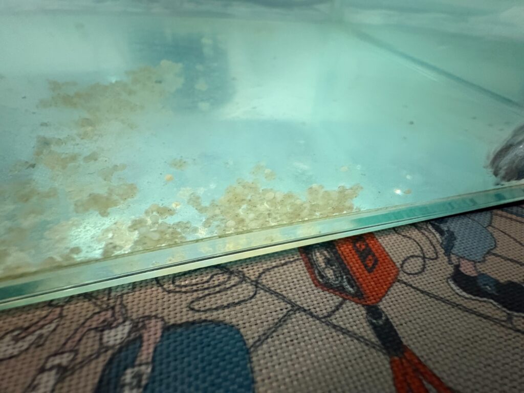 最初の排卵は100個ぐらい、産んだそばから喰ってたので、別水槽に親を移します。