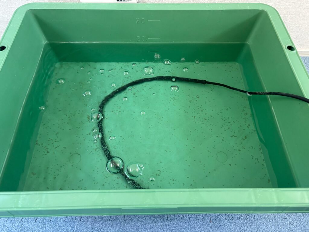 金魚の卵は放っておくとすぐにカビてしまうもので、酸素を供給して水を循環させます。