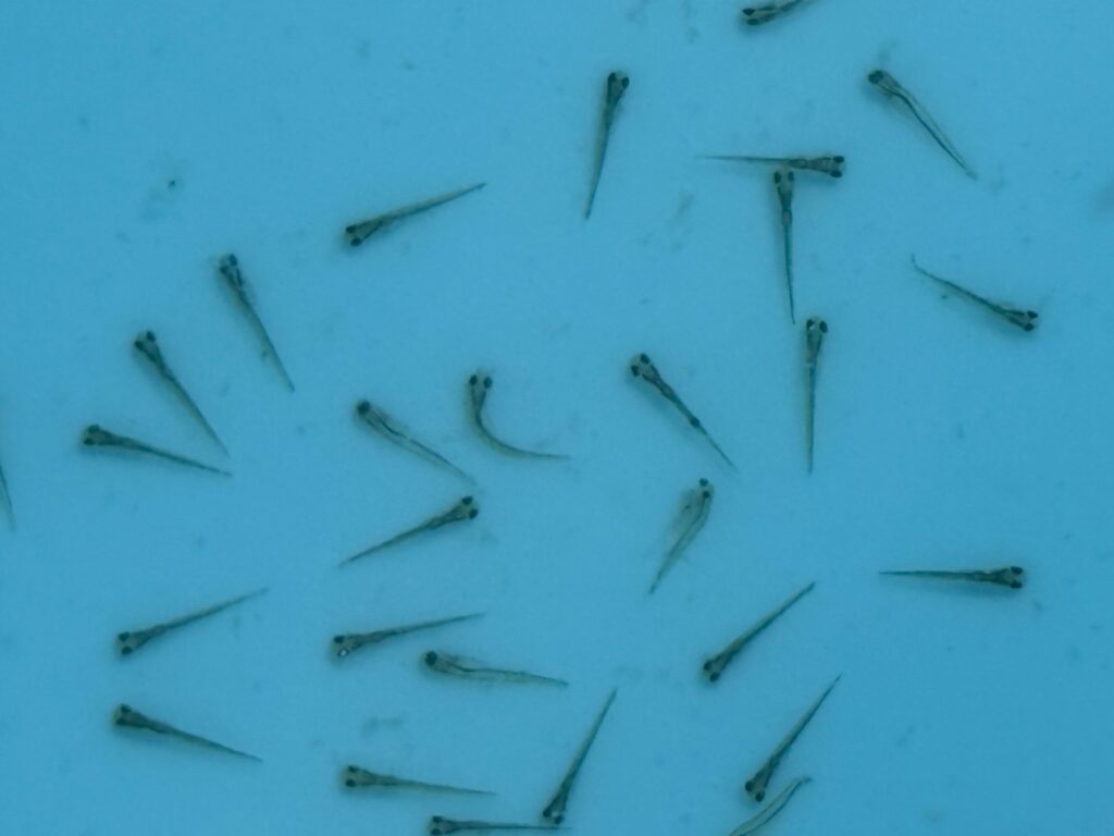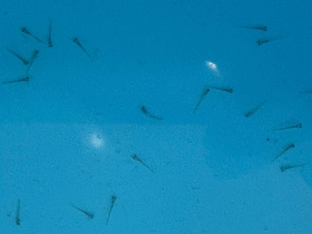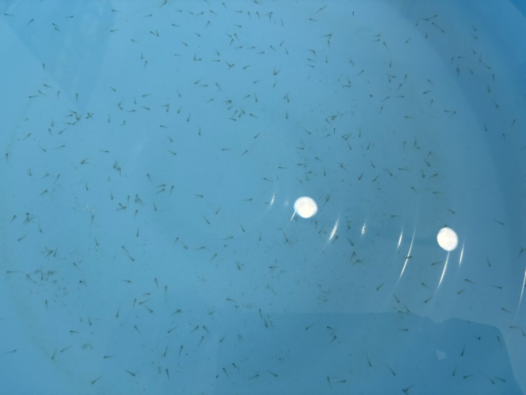 これをスポイトで取りつつ、奇形の子や泳ぎがオカシイ子は回収します。