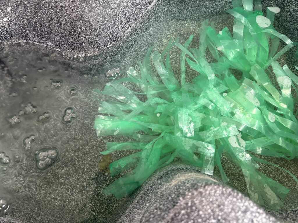 こちらは白濁したものは丁寧に取り除き、極力触らないようにしているプラ舟になります。